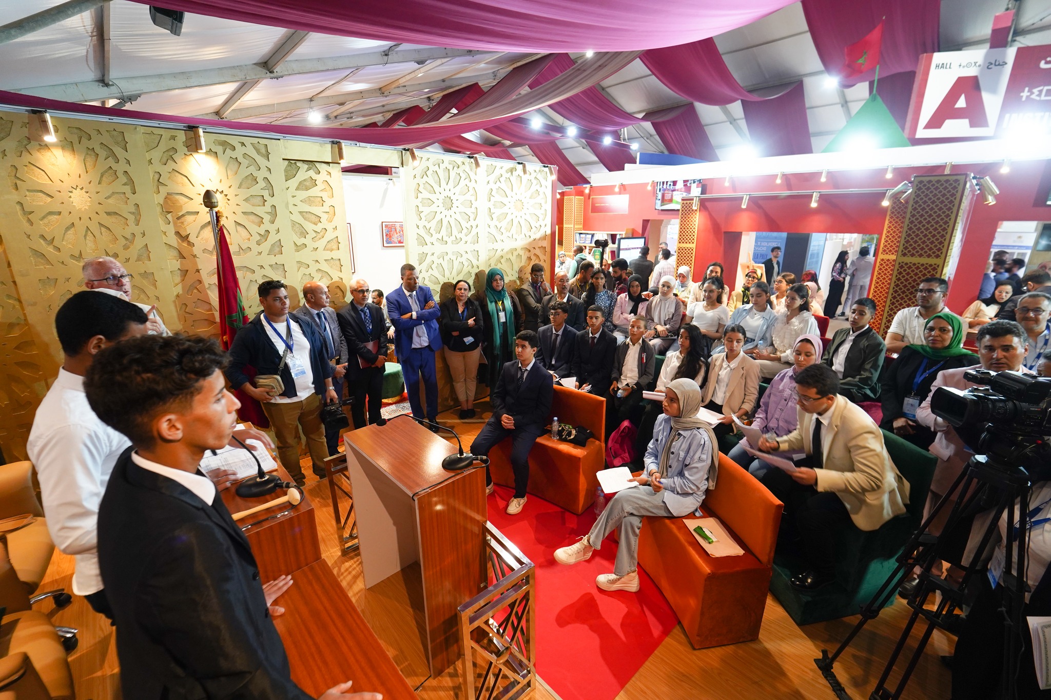 وفي التفاتة لا تخلو من رمزية، خصصت جلسة المحاكاة الأولى التي نظمت أمس الجمعة لتلاميذ منطقة الحوز، على أن تتواصل هذه المبادرة طيلة فعاليات المعرض الدولي للكتاب والنشر بعقد جلسات تحاكي جلسات عمومية يشارك التلاميذ في تقمص أدوار شخصياتها العمومية وهي كل من رئيس الجلسة، أمين الجلسة، البرلمانيون، الحكومة، كل ذلك في احترام تام للنظام الداخلي للمجلس.
